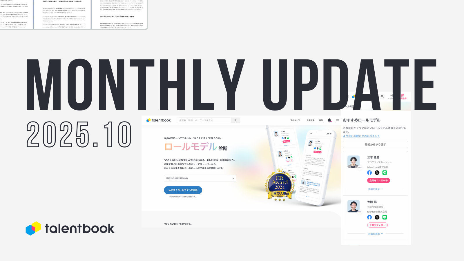 2025年10月は、talentbookメディアの大きなアップデートとして「ロールモデル診断」という新機能をリリースしました。本記事では「ロールモデル診断」の機能について紹介しています。