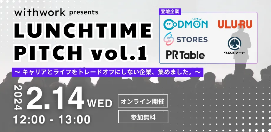 ワーキングペアレンツのためのハイクラス転職サービス「withwork」を運営するXTalent主催の「LUNCH TIME PITCH vol.1 〜キャリアとライフをトレードオフにしない企業、集めました。〜」に、当社人事部 タレントアクイジションの竹田祥理が登壇しました。